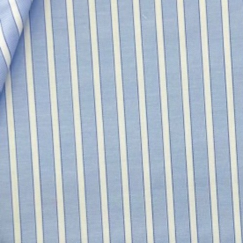 Gentle light blue stripes and a subtle dobby texture create a cheerful yet sophisticated fabric. Soft, breathable, and easy to wear, it’s perfect for stylish everyday pieces.