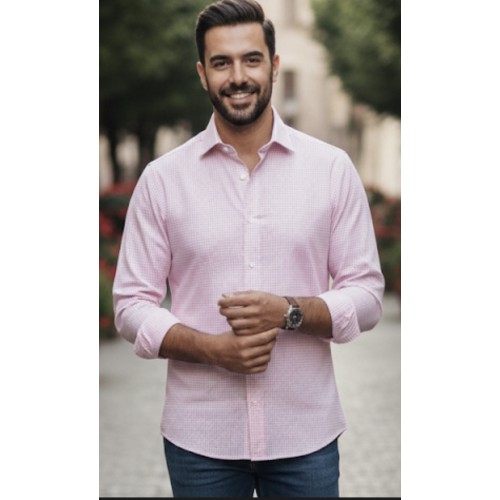 This pink micro-check cotton shirt offers a fresh, refined look with its subtle micro-check pattern and smooth, breathable fabric. Light and comfortable, it adds a touch of color while maintaining a polished appearance suitable for both work and smart-casual wear. A versatile wardrobe piece that balances style with everyday ease.