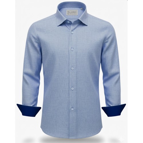 - Product Code: Light Blue Textured Linen Shirt – Contrast Navy Cuffs