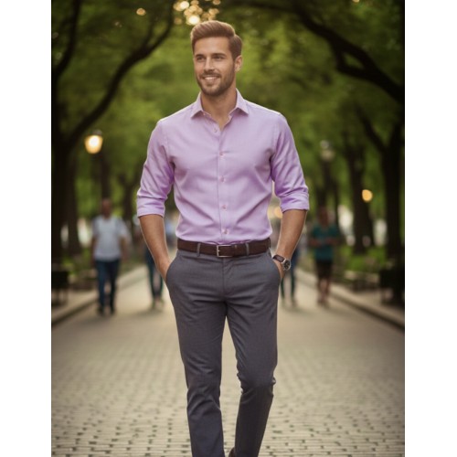 Elevate your wardrobe with this refined lavender cotton shirt. Crafted from premium breathable cotton, it offers exceptional comfort and a smooth finish ideal for long days at work or stylish evening wear.