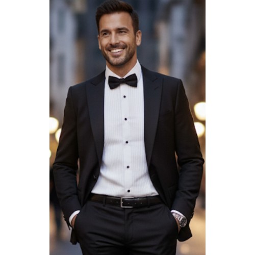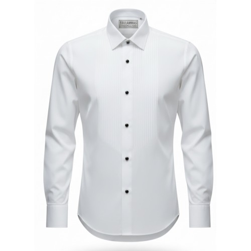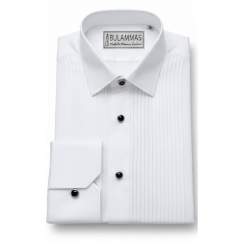 • Product Code: White Pleated Front Tuxedo Shirt with Black Stud Buttons