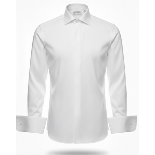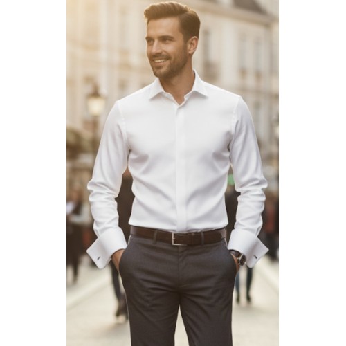 Make a statement of timeless elegance with this classic white French cuff cotton shirt. Tailored from premium, smooth cotton, it offers a crisp, clean finish that’s perfect for formal occasions, business settings, or elevated evening wear. The concealed placket enhances its refined minimalism, while the French cuffs provide a sophisticated touch that pairs beautifully with your choice of cufflinks.