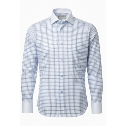 This cotton oxford shirt features a light blue and white check pattern that offers a clean, timeless look. Made from durable, breathable oxford cotton, it provides all-day comfort with a structured yet soft feel. Finished with a crisp white contrast collar and cuffs, this shirt is ideal for business, formal, and smart-casual wear, pairing effortlessly with tailored trousers or chinos for a polished wardrobe staple.