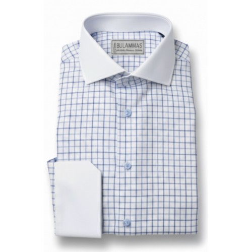 - Product Code: Blue Cotton Oxford Check Shirt - White Collar & Cuffs